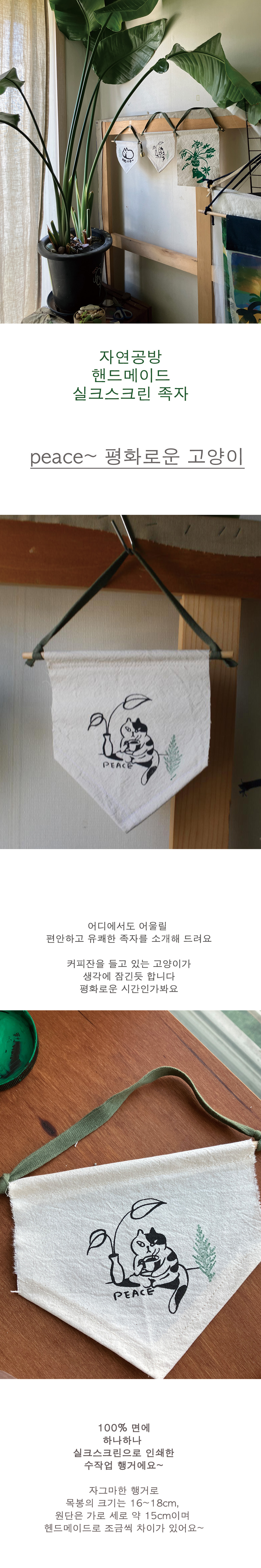 100% 면에 하나하나 실크스크린으로 인쇄한 수작업 행거에요~